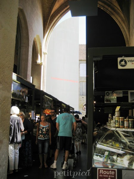 This indoor market was created by one of France's top architects, Jean Nouvel, converting the church of Sainte-Marie in the centre of Sarlat. It is a mix of the old & new, especially with the huge steel doors. There is also a panoramic lift in the bell tower which you can ride up to see breathtaking views of the surrounding area. We were too busy looking at the food on display & forgot to go up in it! Well there's always next time...